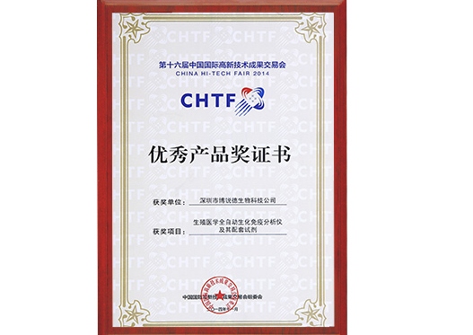 全自動儀優(yōu)秀產(chǎn)品證書
