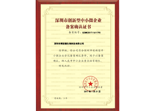 深圳市博銳德生物科技有限公司中小微備案證書