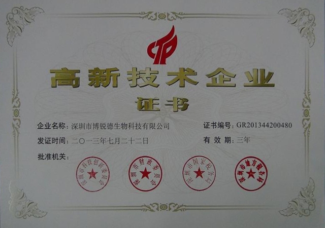 博銳德公司榮獲“國家高新技術(shù)企業(yè)”