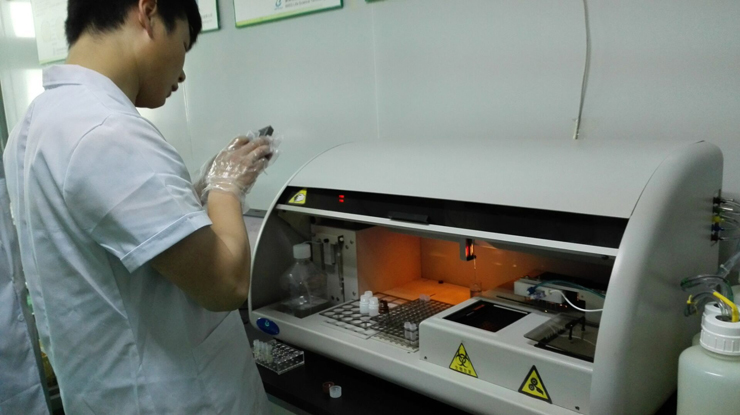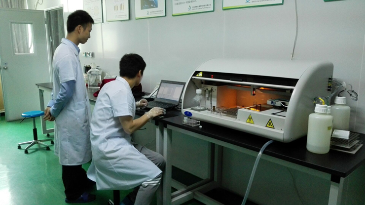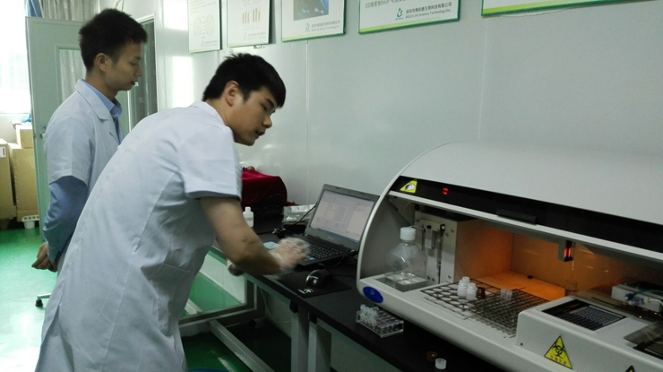 在公司總部的實驗室中,張老師詳細的了解了我們?nèi)詣觾x器的特性及配套試劑在儀器上使用的方法。