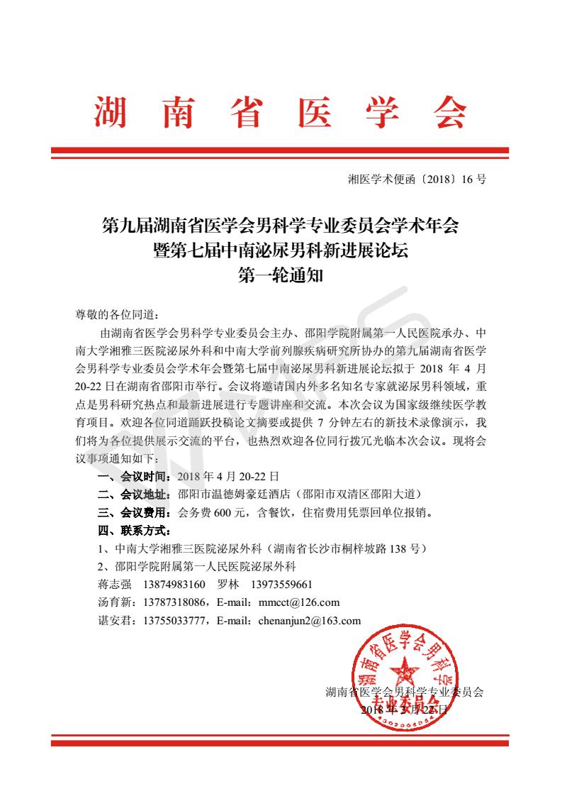 博銳德將參加第九屆湖南省醫(yī)學會男科學專業(yè)委員會學術年會暨第七屆中南泌尿男科新進展論壇