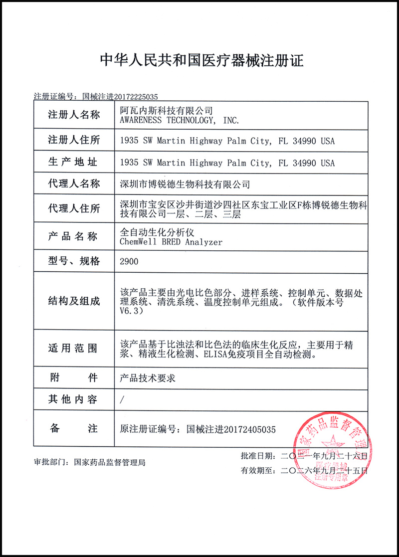 (9)09月 博銳德獲得全自動(dòng)生化分析儀延續(xù)注冊(cè)證