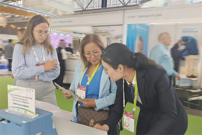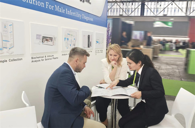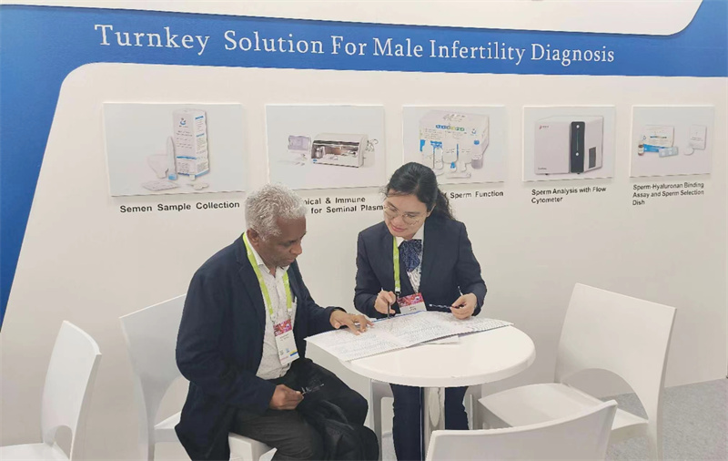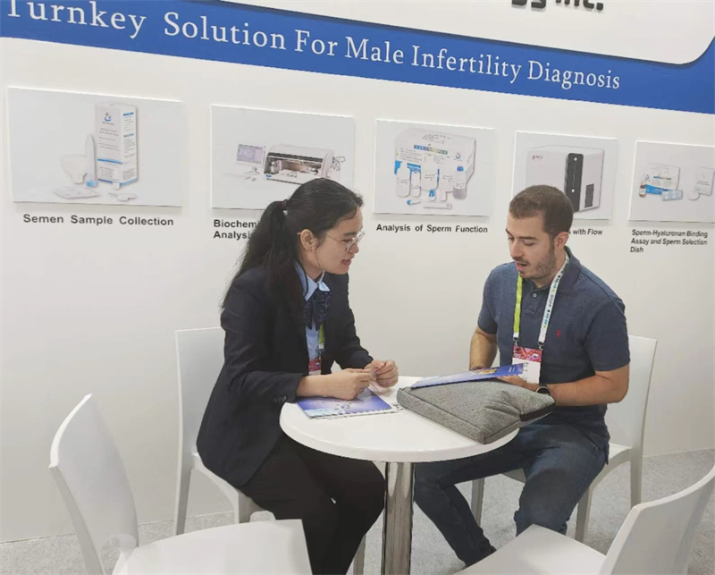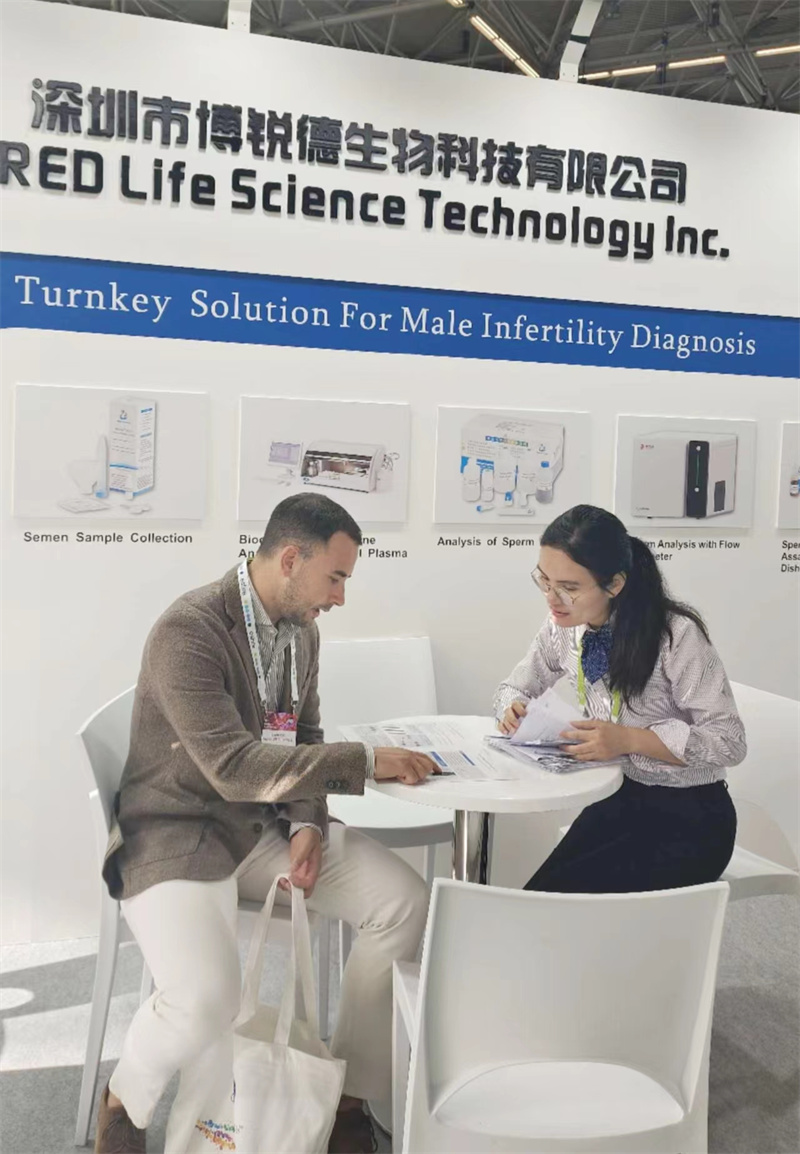 眾多前往博銳德展臺咨詢生殖醫(yī)學半自動生化免疫分析儀、精子-透明質酸結合試驗試劑盒、活精子DNA碎片等熱銷產品。